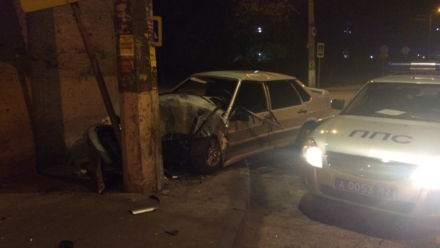 По словам очевидцев, легковушка уходила от подрезавшей ее машины. Водитель не справился с управлением и машина въехала в столб.