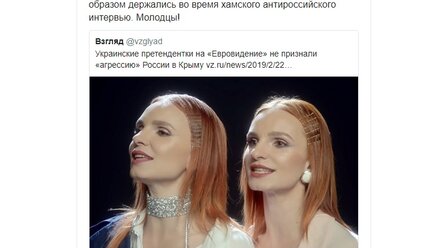 Сестёр Опанасюк, которые едут на "Евровидение" и не признают Крым украинским, поддержали Лоза и Скабеева