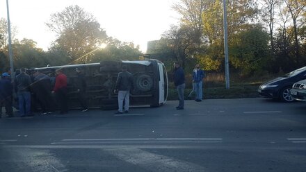 ДТП произошло рано утром (приблизительно в 6:00 – 6:30) в районе поворота на мкр. Каменка. Микроавтобус оказался на боку после столкновения с легковушкой. Об этом сообщили очевидцы в социальной сети «ВКонтакте».