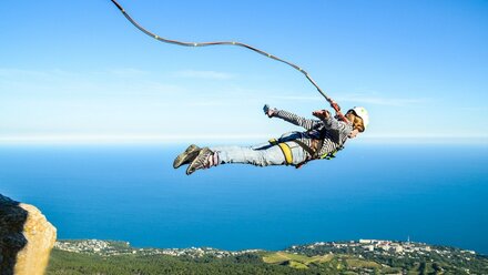 В Крыму работают площадки для роупджампинга. Это прыжки со скалы с веревкой или резинкой на амортизирующей страховочной системе. Заниматься роупджампингом здесь можно круглогодично и практически повсеместно: Крымские горы изобилуют скальными уступами и отвесными склонами, и идеально подходят для подобного экстремального развлечения.