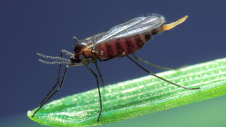 Гессенская муха или хлебный комарик – очень вредное в полеводстве насекомое, так как питается многими культурными злаками: пшеницей, рожью, иногда ячменем и очень редко овсом. Самки способны откладывать от 40 до 80 яиц. Спустя 4-10 дней из них появляются личинки, которые растут, высасывая все соки из молодых стеблей и листьев. Развитие насекомого продолжается около 60 дней.
