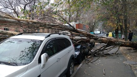 «Сухое дерево упало поперек дороги, придавив припаркованную рядом машину», - сообщили очевидцы в соцсети.