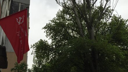 В Симферополе красный победный флаг украсил один из подъездов многоэтажки