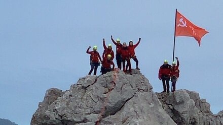 Крымские спасатели водрузили Знамя Победы на вершину Ай-Петри