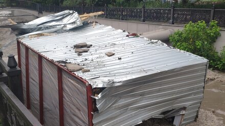 В Симферополе из-за сильного ливня строительный вагончик унесло в Салгир