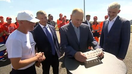 Президенту России Владимиру Путину подарили килограмм асфальтобетонного покрытия федеральной трассы «Таврида» в Крыму. Подарок презентовали в ходе открытия трассы накануне.