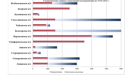 Министерство жилищно-коммунального хозяйства Крыма опубликовало график наполняемости водохранилищ республики по состоянию на 19 марта. Об этом сообщает пресс-служба ведомства.