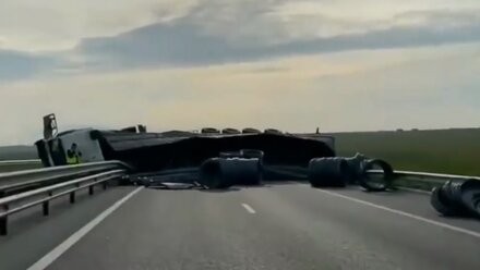 Сегодня утром на трассе «Таврида» перевернулся большегруз, перекрыв одно направление автодороги. Со слов водителя, ДТП произошло вследствие взрыва одного из колес грузовика.