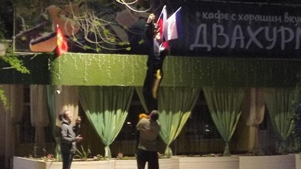 Минувшей ночью в Саках неизвестные сняли флаги, которыми украсили улицы города в честь празднования Дня Победы.