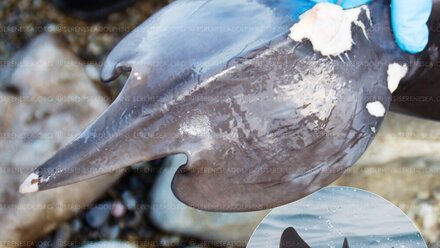 Волонтеры нашли в Крыму дельфина с трезубцем на хвосте