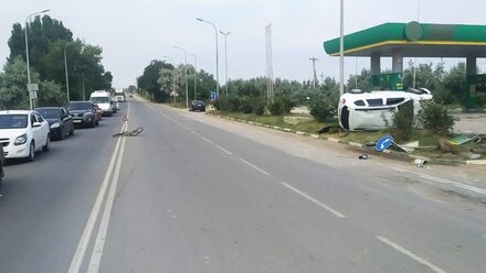 "Несовершеннолетний велосипедист выехал на полосу встречного движения, где по касательной столкнулся с автомобилем «Renault Duster». Водитель автомобиля, уходя от столкновения, допустил выезд за пределы проезжей части, где допустил наезд на препятствие, в результате произошло опрокидывание транспортного средства", - говорится в сообщении.