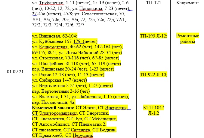 1 сентября с 8 до 17 часов пройдут ремонтные работы на электрических сетях Симферополя. Будут обесточены десятки улиц. Об этом сообщает ГУП РК «Крымэнерго».