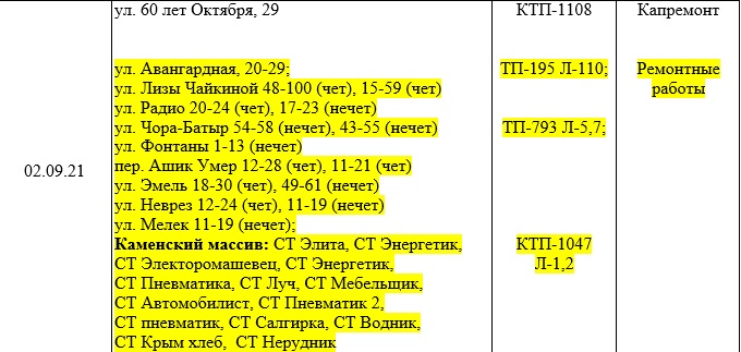 2 сентября с 8 до 17 часов в Симферополе будут обесточены несколько улиц и районов. Об этом сообщает ГУП РК «Крымэнерго».