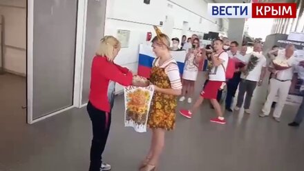 Параолимпийскую чемпионку встретили в аэропорту имени Айвазовского родственники, тренерская команда и представители ведомств.
