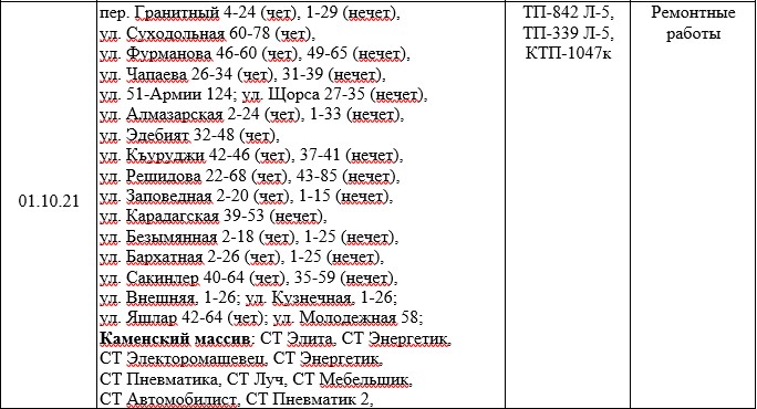1 октября, в пятницу, в Симферополе пройдёт очередной этап капитального ремонта электрооборудования. Об этом сообщает ГУП РК «Крымэнерго».