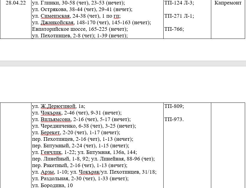 Десятки улиц Симферополя останутся без электричества 28 апреля