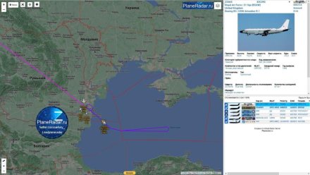 Самолёт радиоэлектронной разведки RC-135W Airseeker был замечен у берегов Крымского полуострова накануне вечером.
