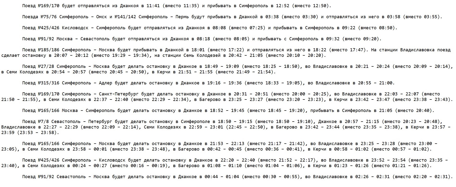 «Изменения будут действовать с 16 по 31 января из-за ремонта на участке Джанкой-Отрадная и затронут поезда дальнего следования», - уточнили в пресс-службе.