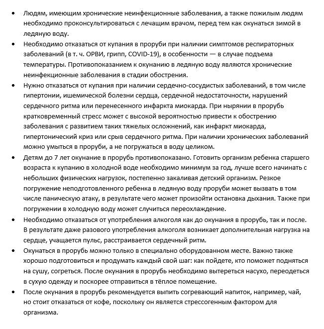 Участники крещенских купаний должны адекватно оценивать самочувствие и учитывать состояние здоровья для снижения риска нежелательных последствий.