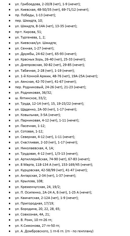 Электроснабжение будет ограничено с 08:00 до 17:00 по следующим адресам: