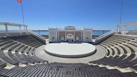 Портал сцены украшен белоснежными колоннами, пилястрами и балюстрадой, сообщает Турпортал Крыма.
