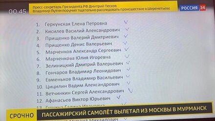 Списки выживших в авиакатастрофе в аэропорту "Шереметьево"